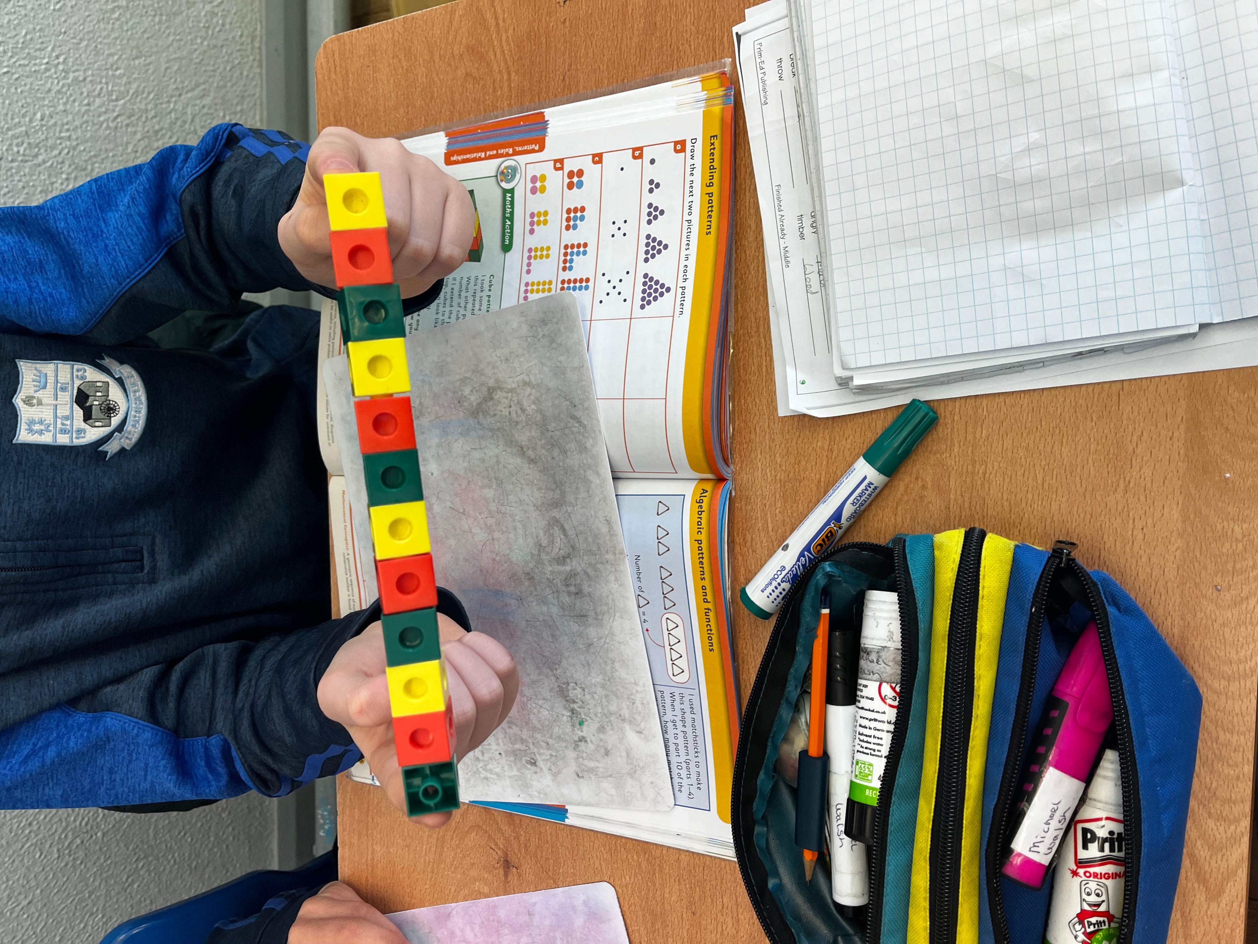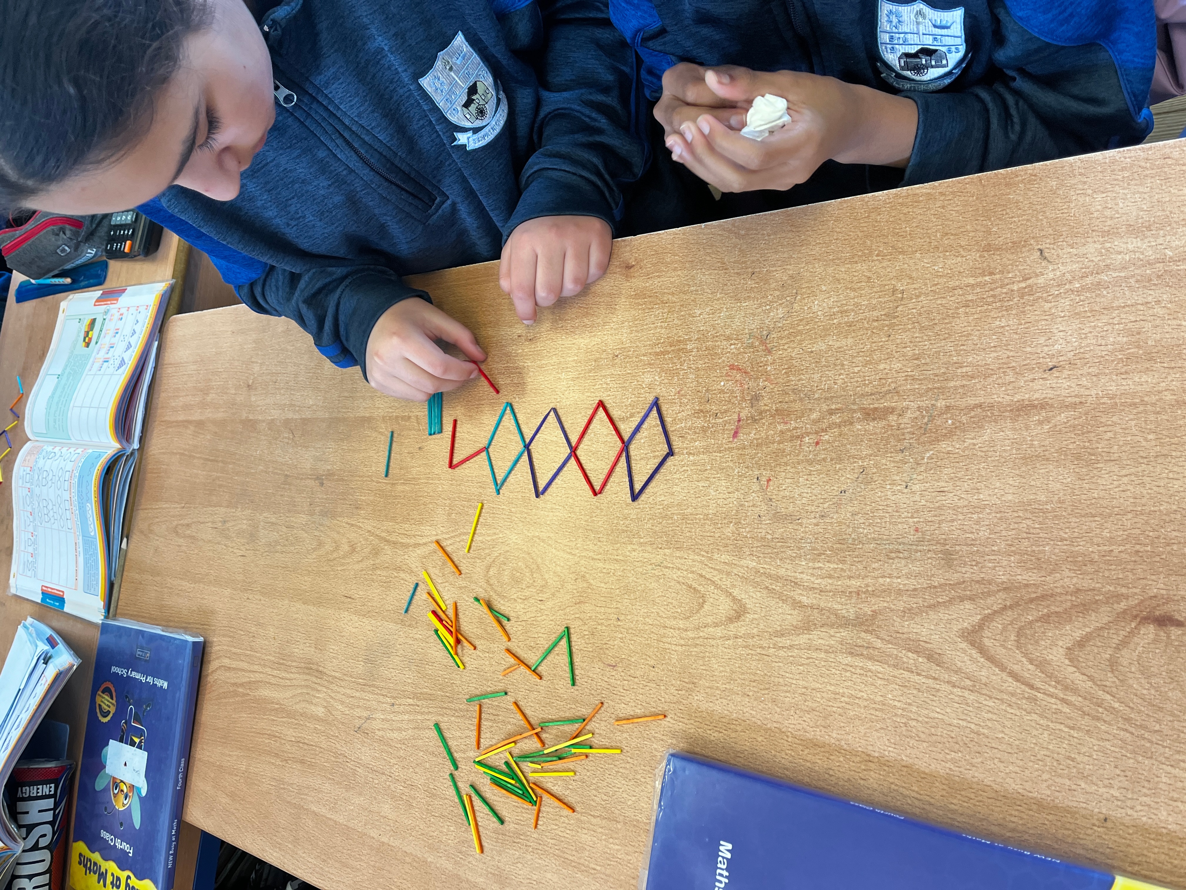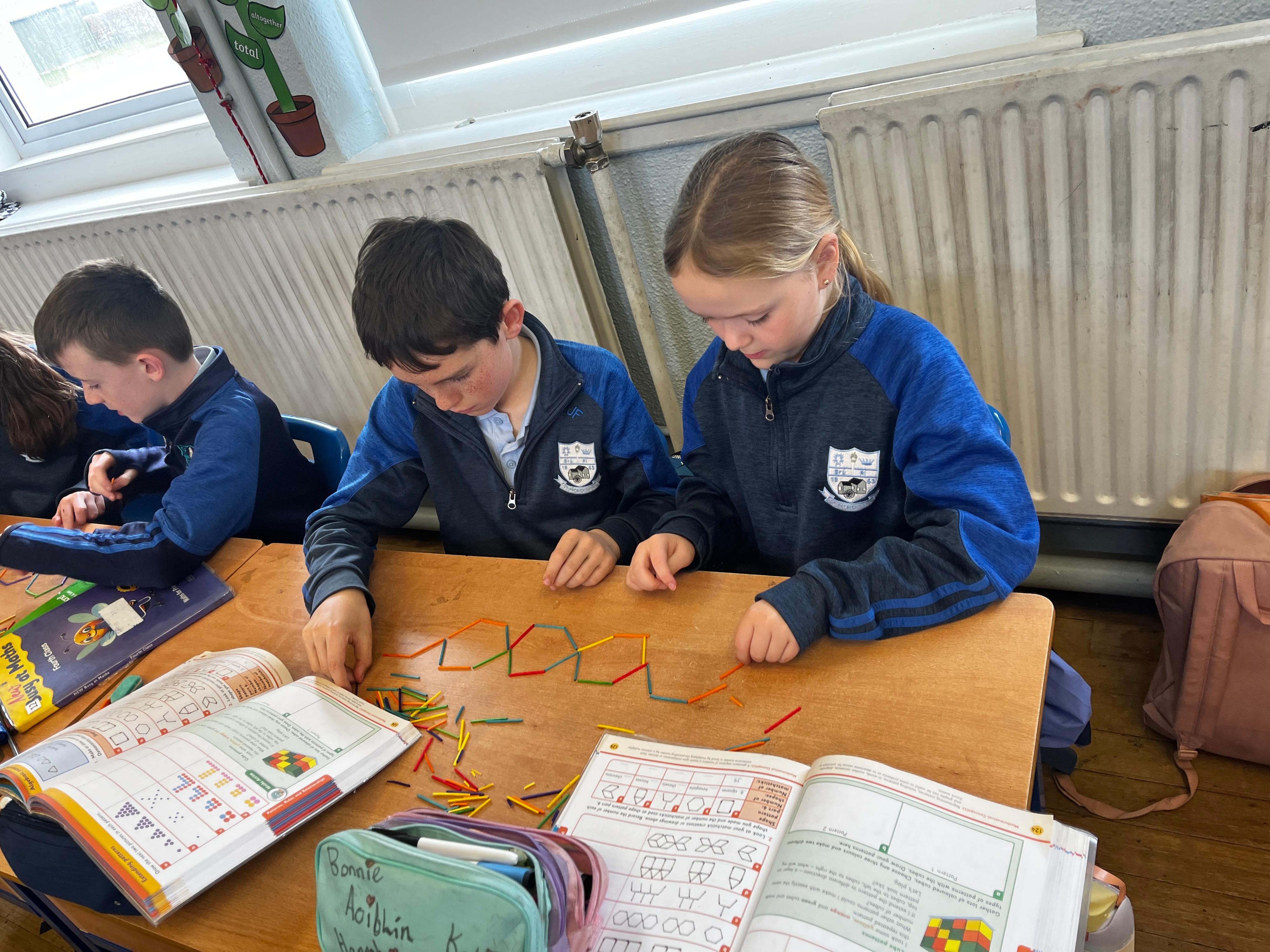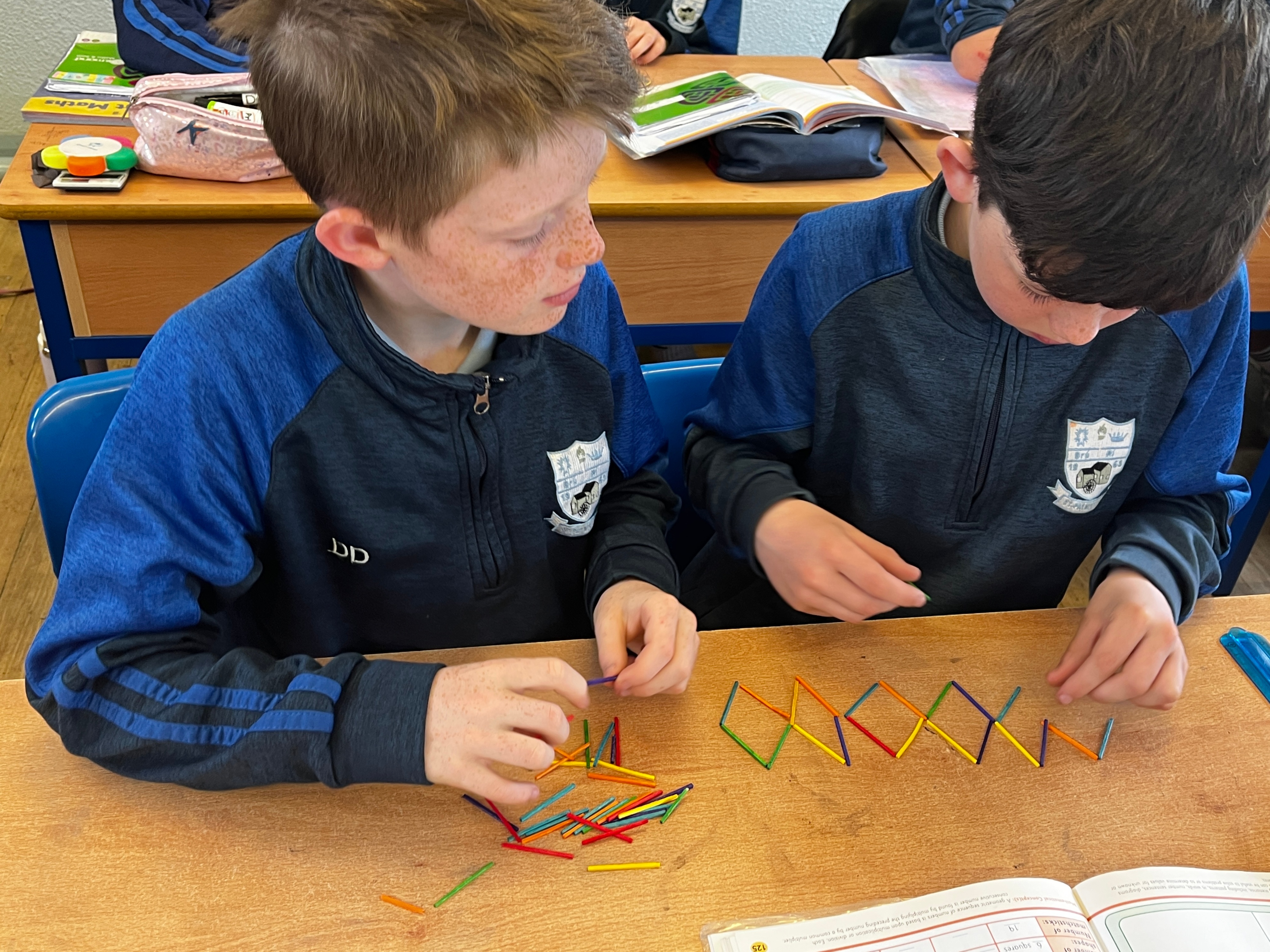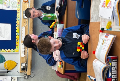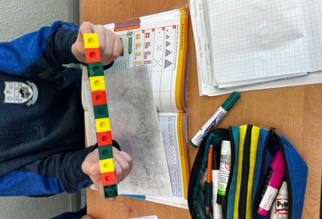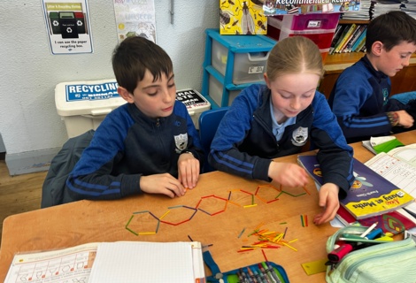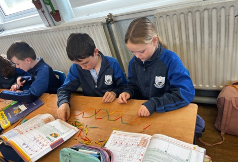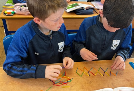 4th class have been having great fun during Maths time while learning about Patterns, Rules and Relationships. They used concrete materials such as cubes and matchsticks to create repeating patterns and to continue sequences of patterns.