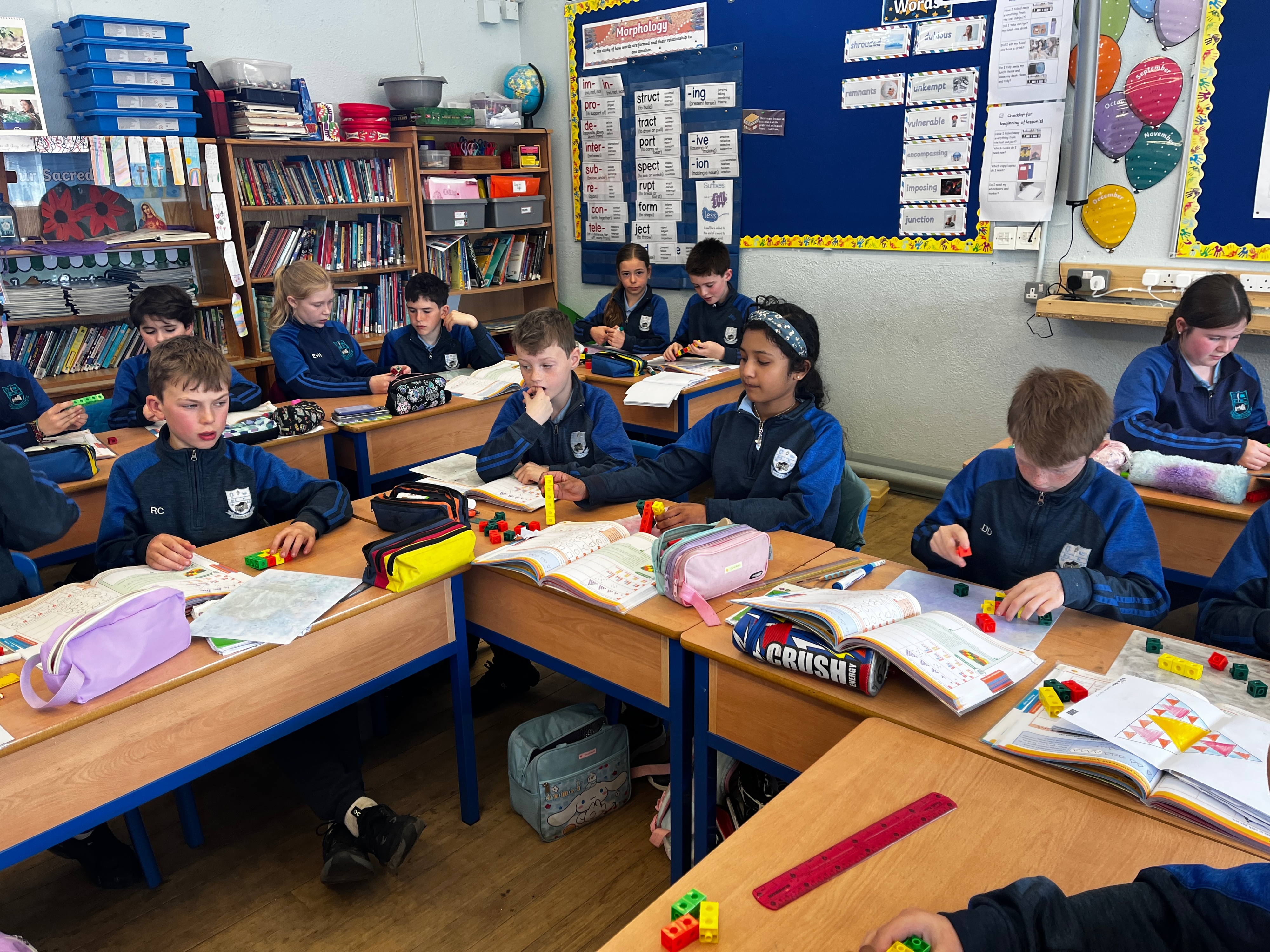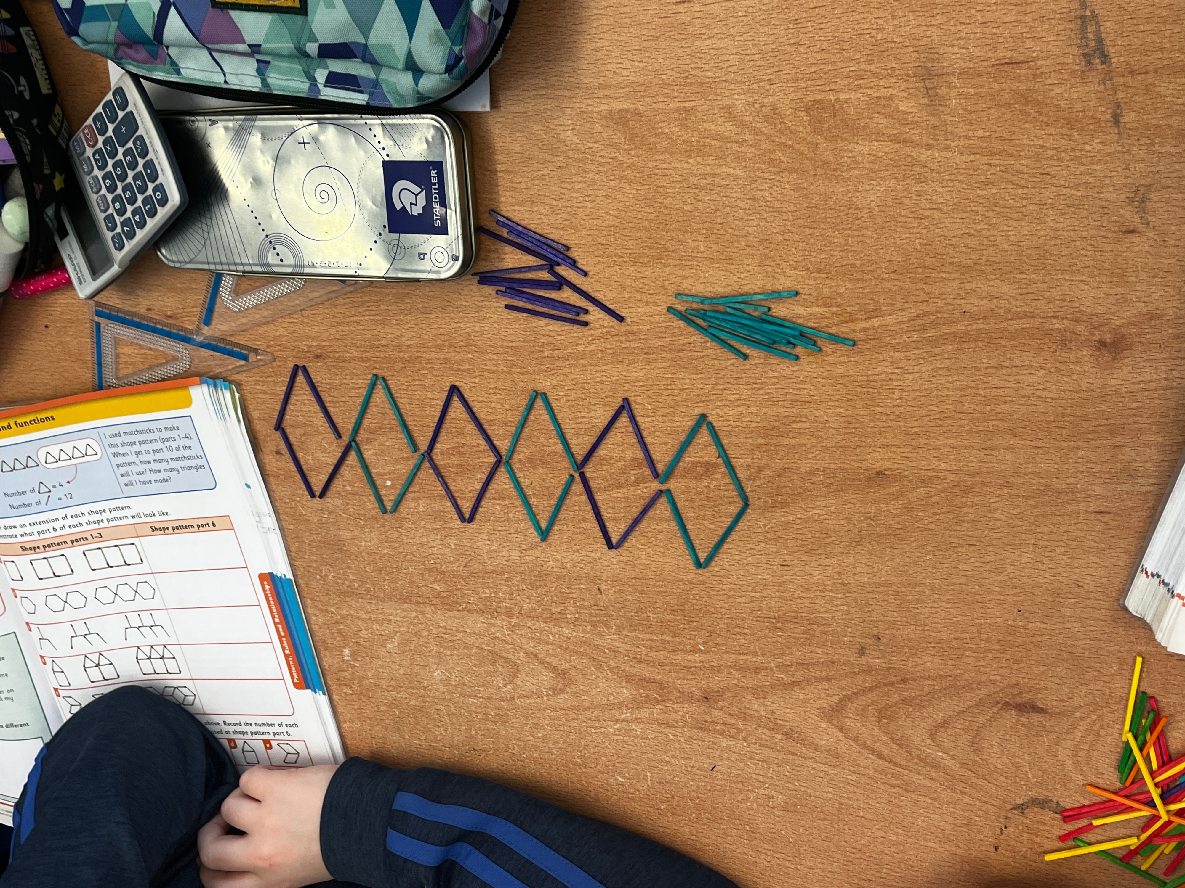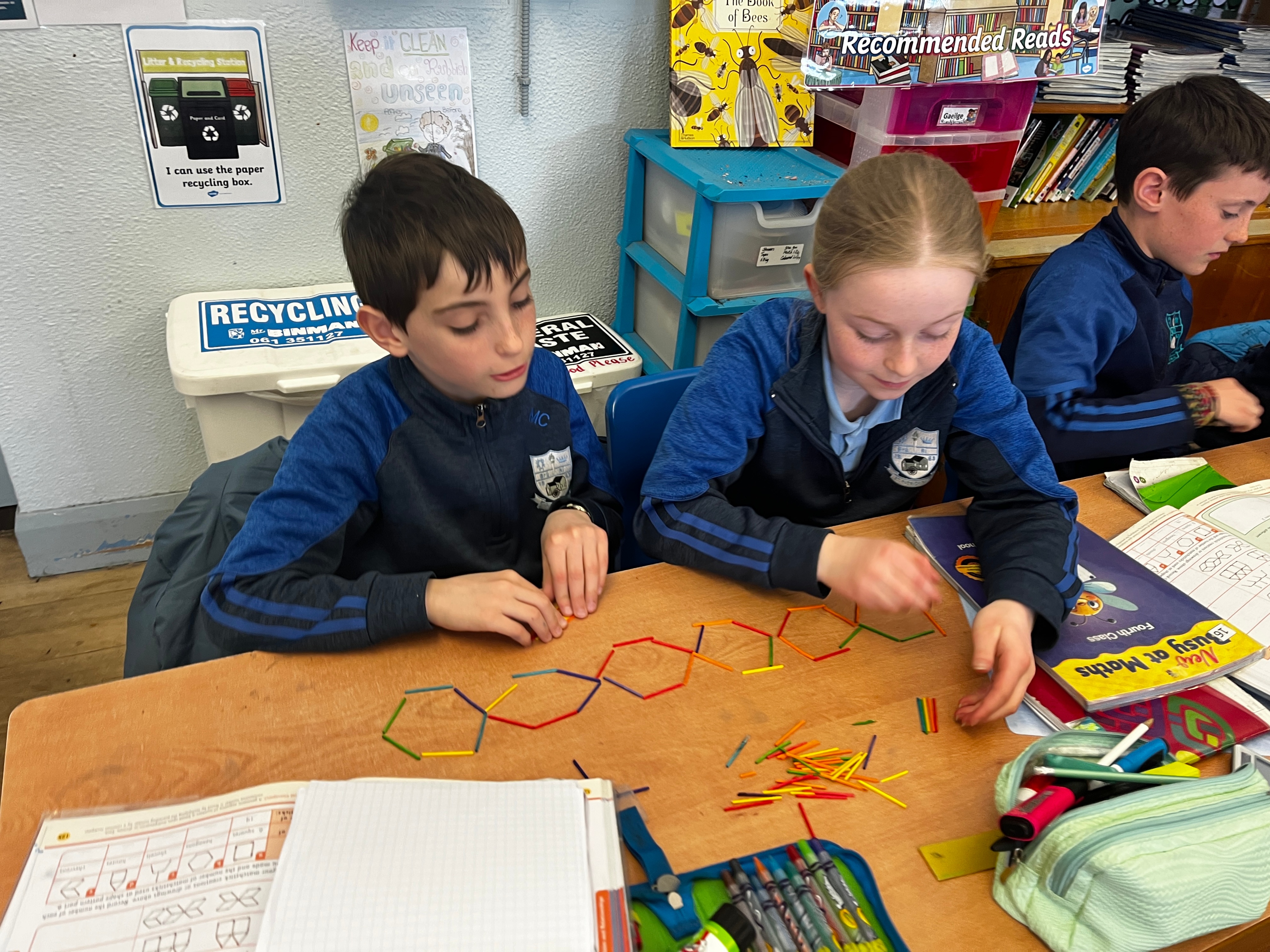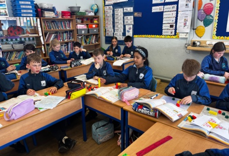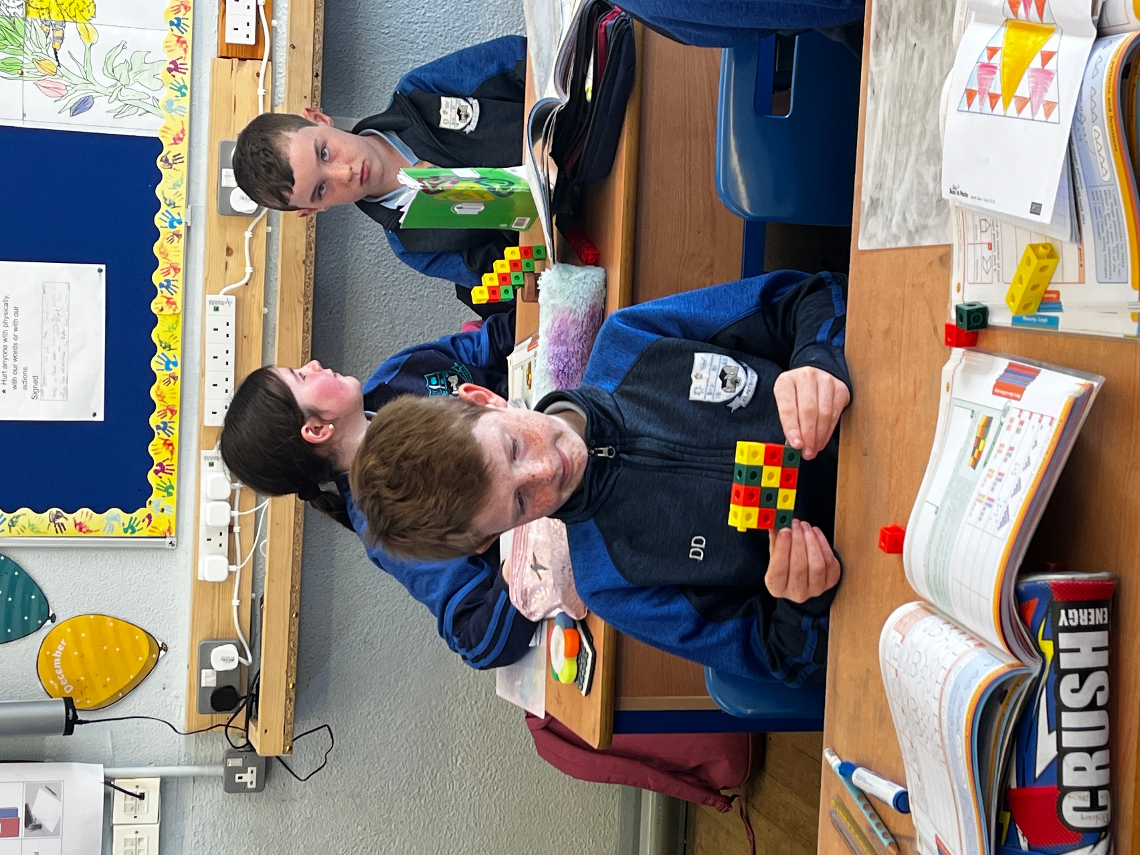 4th class have been having great fun during Maths time while learning about Patterns, Rules and Relationships. They used concrete materials such as cubes and matchsticks to create repeating patterns and to continue sequences of patterns.