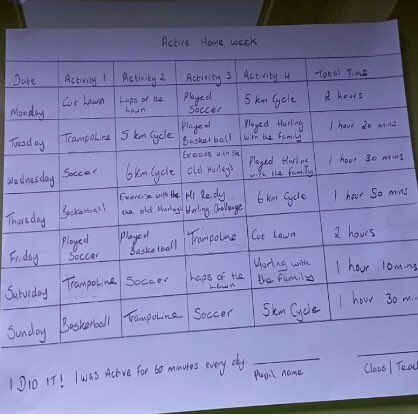 Pupils in 6th class were busy being active last week for #ActiveHomeWeek ⁦ @ActiveFlag .
