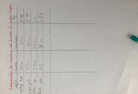 The children then divided the measurement they got for the circumference by the diameter using a calculator.