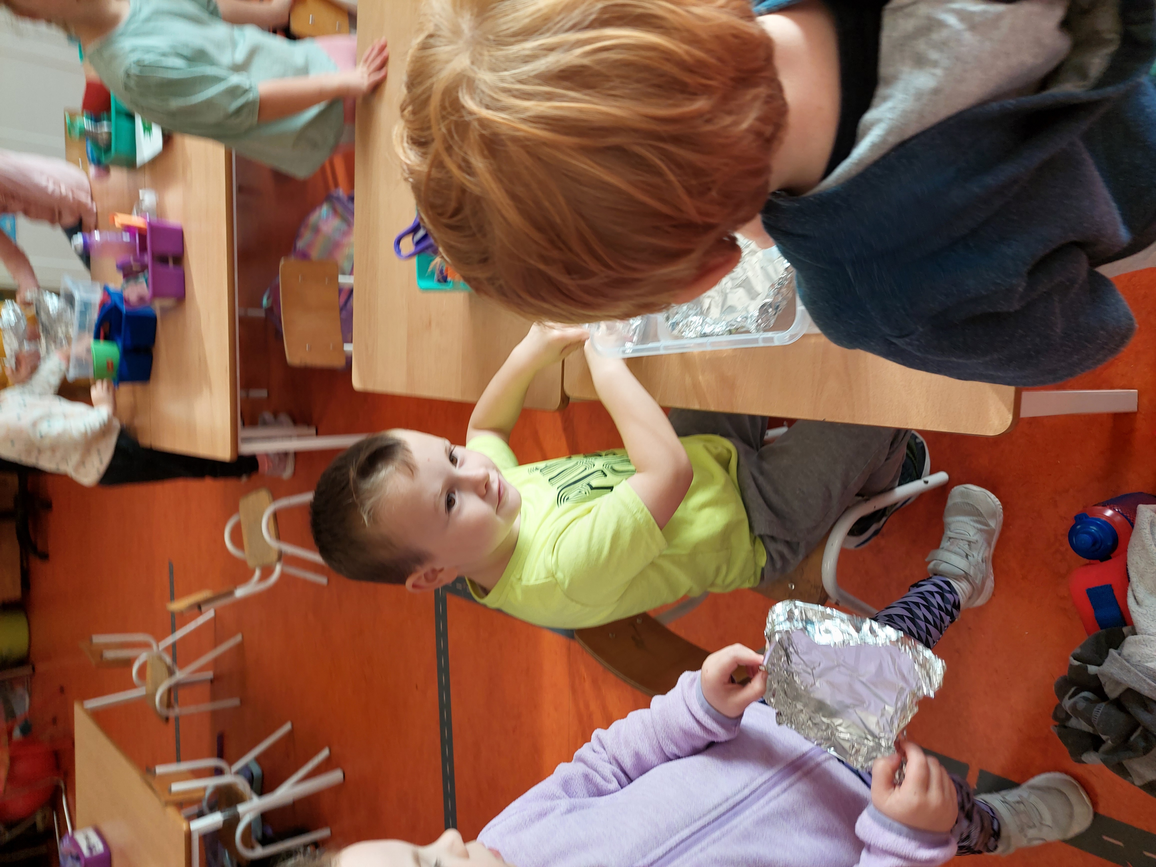 The Juniors tried to make a little boat made from tinfoil that would float on the water. There was a lot of thought and planning involved. It was really interesting to see what shapes and designs were more effective.